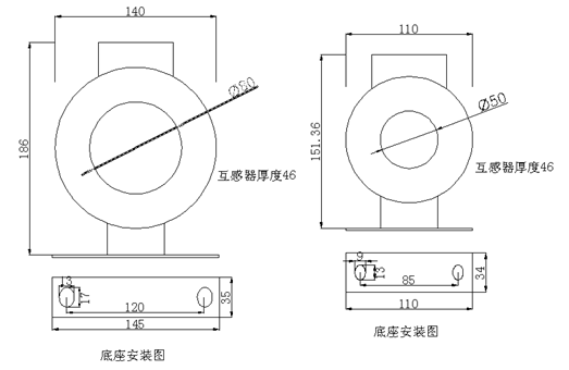監(jiān)測裝置側(cè)視圖及現(xiàn)場開孔尺寸圖
