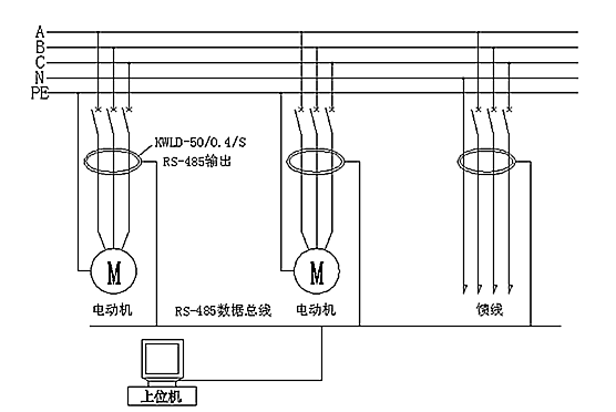4.  總線采樣:監(jiān)控主機(jī)和智能互感器采用RS485數(shù)據(jù)總線傳輸,最多可監(jiān)控128條線路,節(jié)省了大量線纜,降低了成本,安裝更方便。