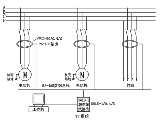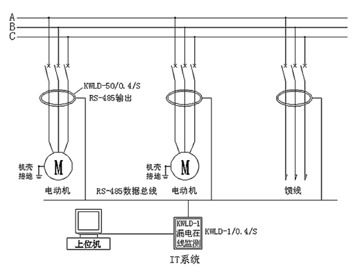 KWLD-6000系列智能漏電監(jiān)測系統(tǒng)主要由 KWLD-1漏電監(jiān)測主機(jī)、KWLD-50/80 智能漏電檢測互感器組成。漏電互感器通過串行總線,將漏電流數(shù)據(jù)上送到監(jiān)測主機(jī),監(jiān)測主機(jī)通過TCP/IP協(xié)議與后臺監(jiān)控計算機(jī)進(jìn)行數(shù)據(jù)交換,實現(xiàn)通訊組網(wǎng)。并且陰雨天絕緣整體劣化情況自動適應(yīng),采用模糊算法干擾屏蔽,使其工作穩(wěn)定可靠。