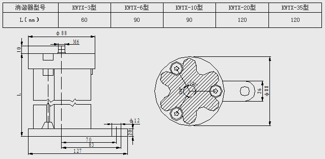 消諧器的外形及尺寸見(jiàn)圖1。不同型號(hào)消諧器的直徑都相同,只是長(zhǎng)度不同。