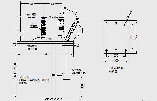 注意:此示意圖僅作為KWNP系列變壓器中性點間隙保護(hù)裝置的安裝參考,尺寸以實際產(chǎn)品尺寸為準(zhǔn)。