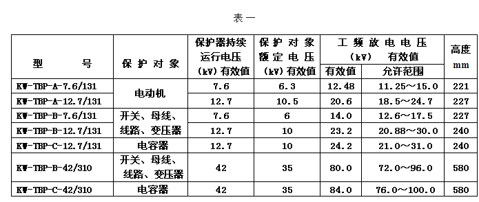 2.持續(xù)運行電壓:允許持久地施加在KW-TBP相間及相對地的工頻電壓有效值;