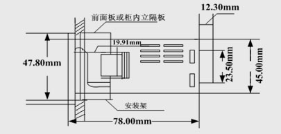 六、安裝結(jié)構(gòu)示意圖 開孔尺寸(mm2) :45±0.5×45±0.5